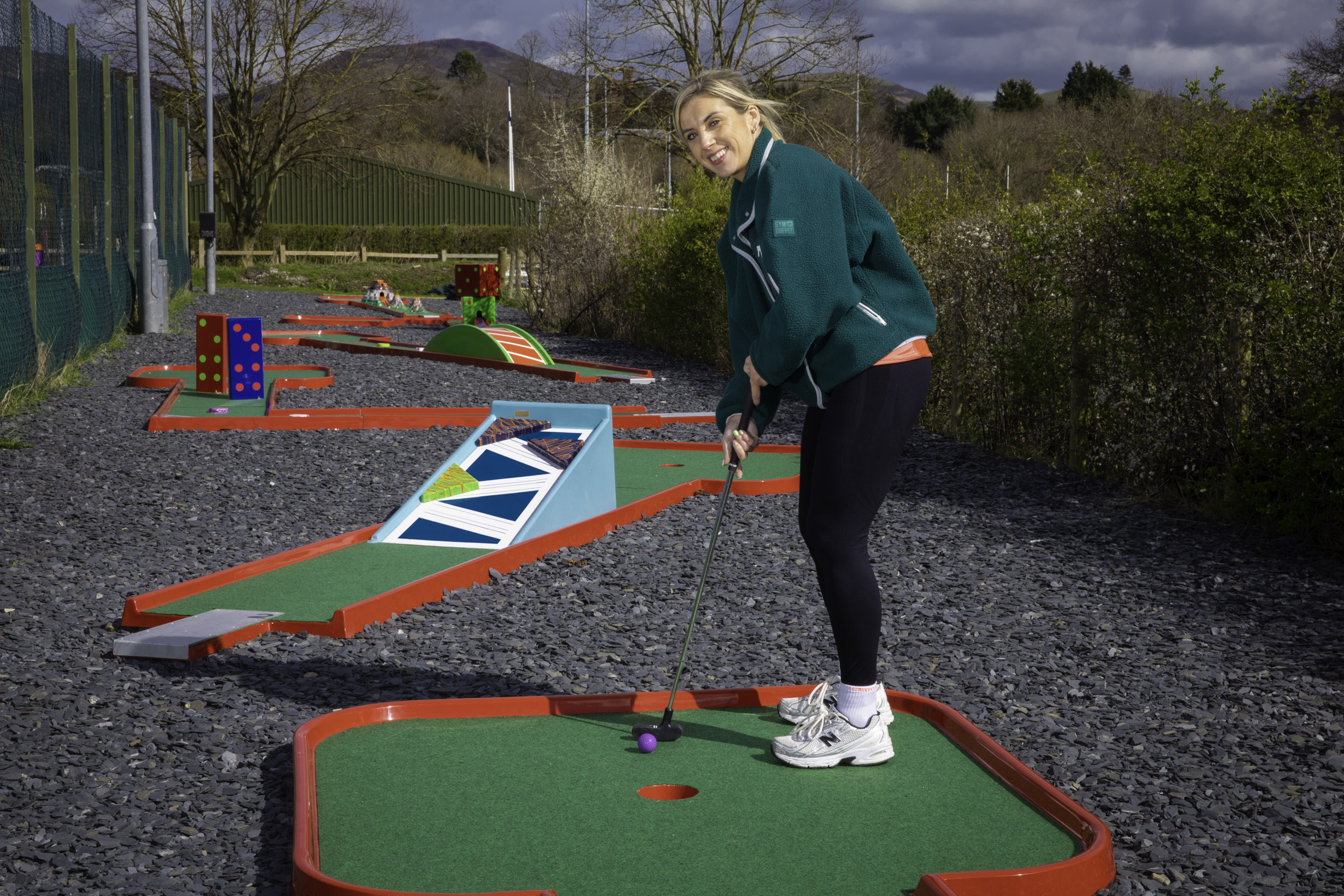 A volcano and a moon rocket are among the challenging hazards at a new crazy golf course in a North Wales town.